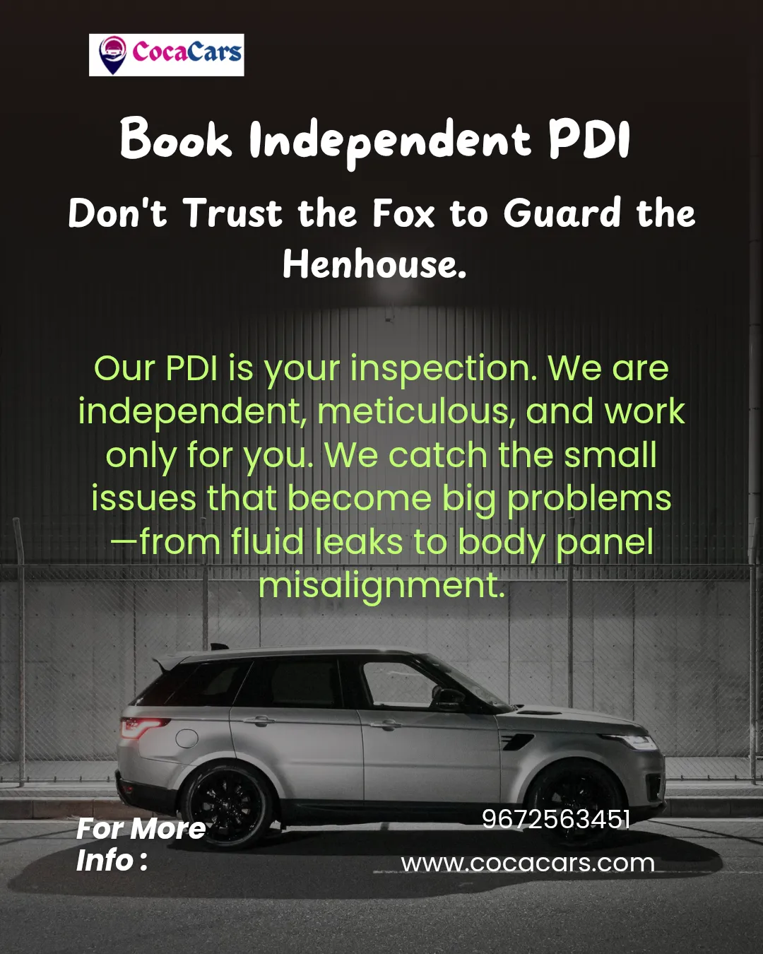 Book you independent new car inspection.